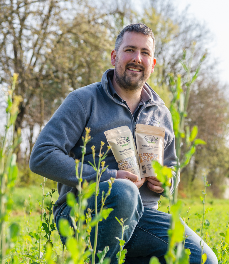 À la ferme, nous cultivons : - des légumes de saison bio, - des légumineuses (lentilles, pois fourragés, pois cassés, féveroles), - des oléagineux (tournesol, colza, cameline), - des céréales (blé, seigle, triticale, maïs, sarrasin, orge, épeautre).